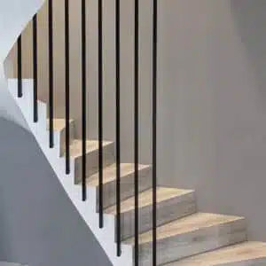 Minimalistinio stiliaus kvadratinių strypukų siena.